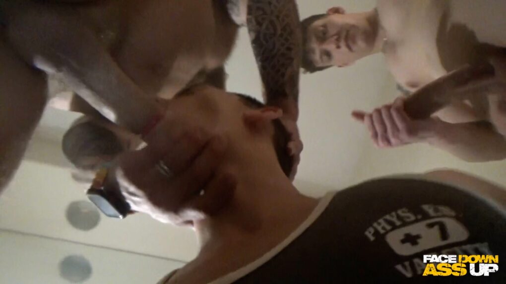 “This freak doesn’t know when to quit. He bottoms the boys left and right. He likes it rough, and loves being used by my guys. They use him like a ragdoll, and he just loves every minute of it.